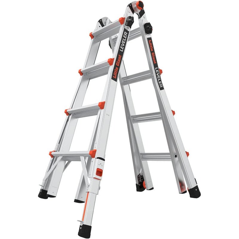 Using an outdoor ladder has always had its challenges, but the Little Giant Leveler changes that experience. Whether you work on a flat ground or set your ladder on a suitcase, the leveler can hold it. If you contribute or exceed all OSHA and ANSI standards, the leveler is recommended to hold 100 kg. in all configurations; and in A-frame, it will hold 300 lbs. on both sides. Odd terrain? No problem. The ratchet leg levels allow you to adjust the legs of the loader in seconds, so you can stabilize the ladder on uneven ground. The retractable legs are more than 7 inch level adjustment. The leveler is the ladder that helps you complete any gift branch with ease. Set up the ladder in different configurations to suit the project at hand, such as A-frame, extension, trail cabinet, 90 degrees or folding trastle-and-shelf. It's quick and easy.